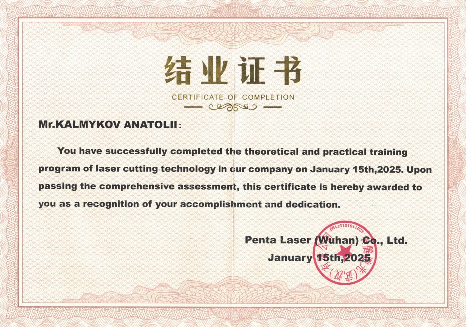 Сертификат Калмыков